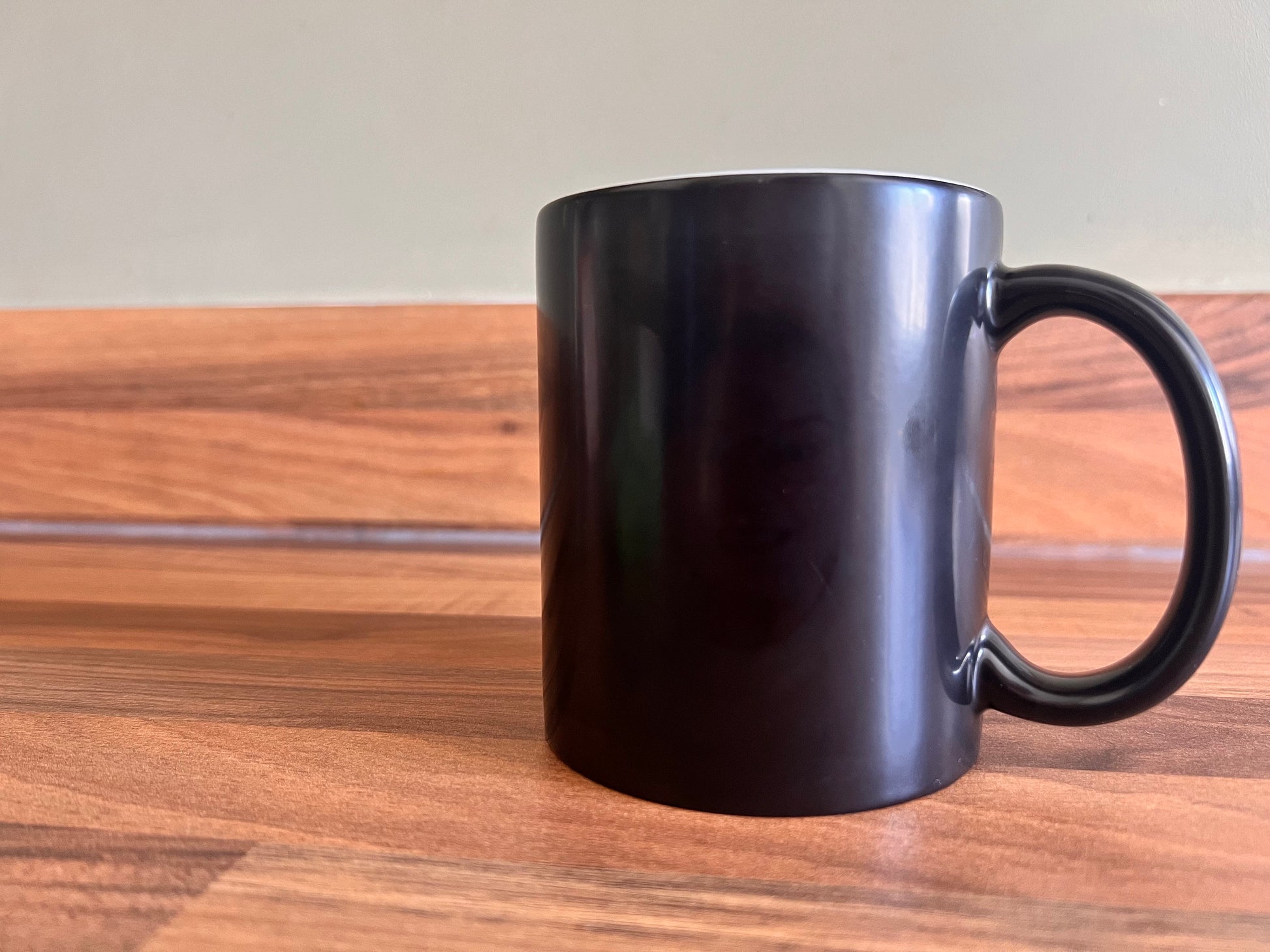 This heat activated mug starts off as a fully black mug, and once a hot liquid is poured into the mug it starts to reveal the mug itself, this could be anything you’d like!