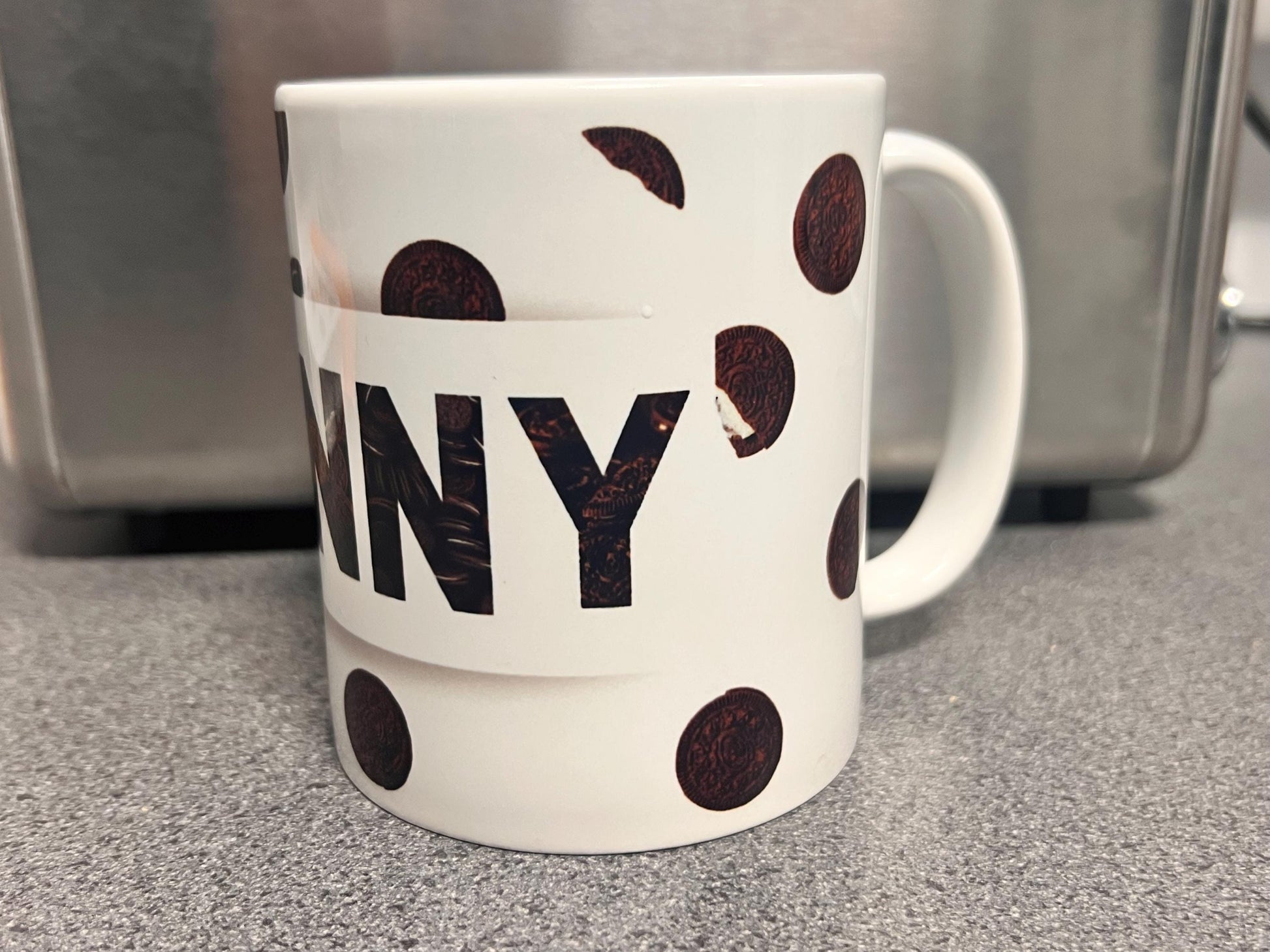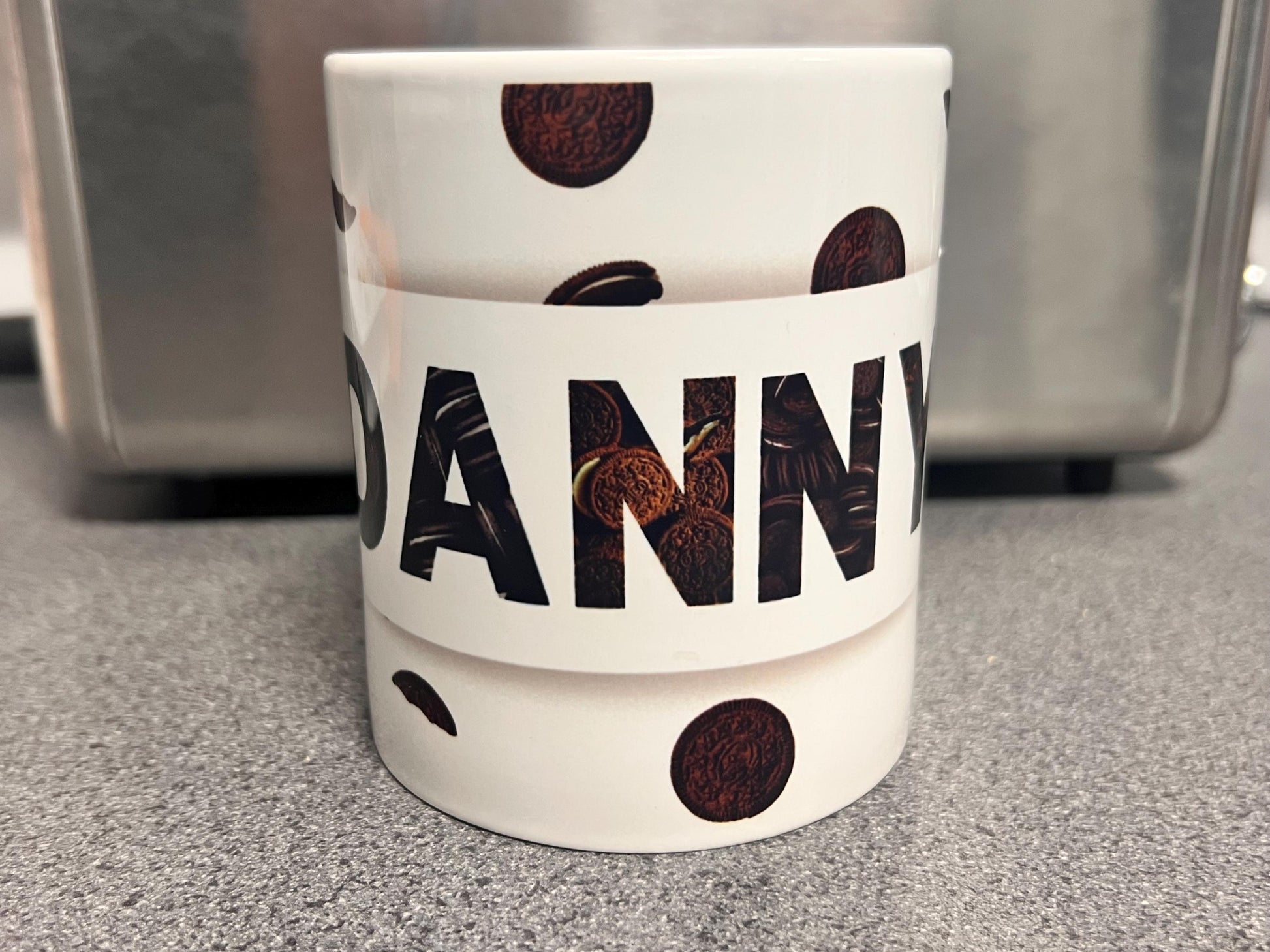 A special personalised mug for a biscuit lover, perfect for a secret Santa, birthday, novelty gift.
