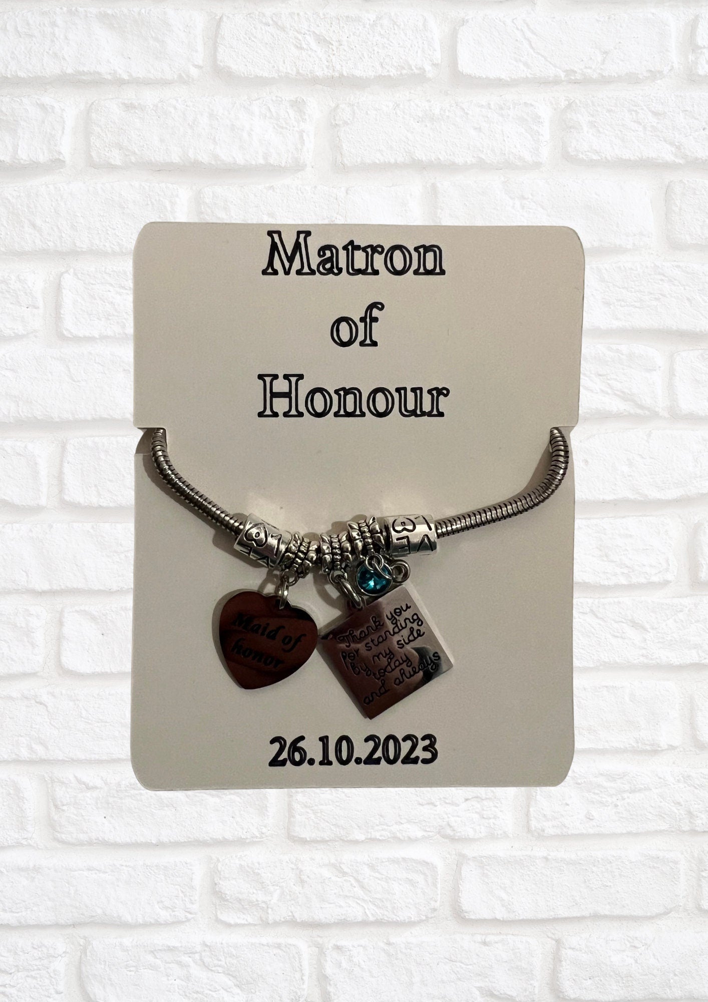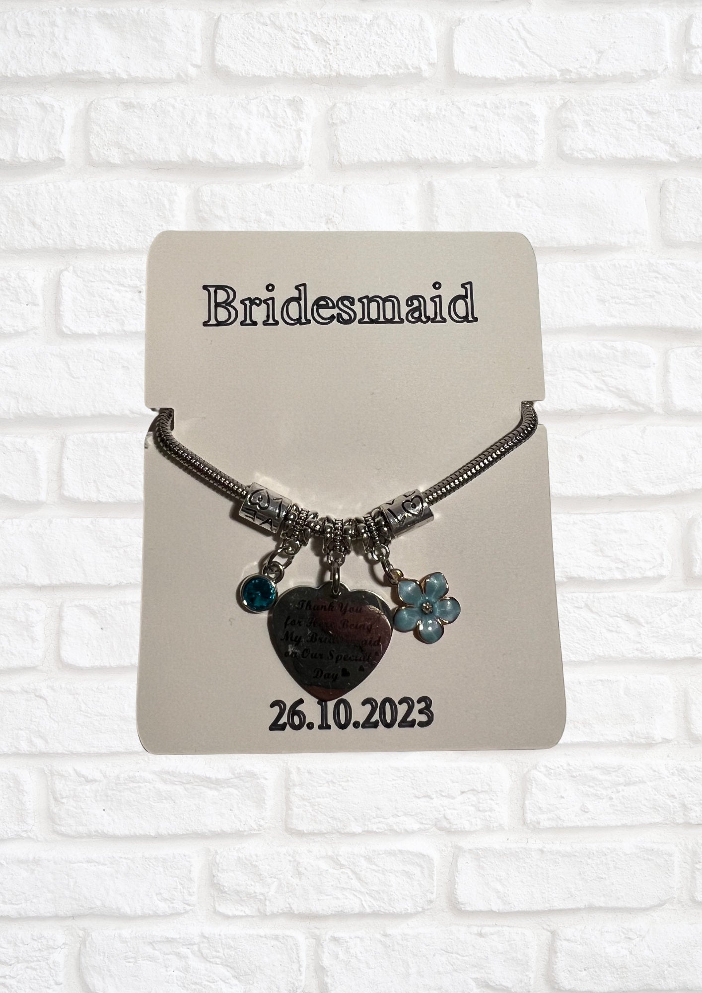 Personalised bracelet holder for bridesmaids and maid of honour. BRACELET NOT INCLUDED.