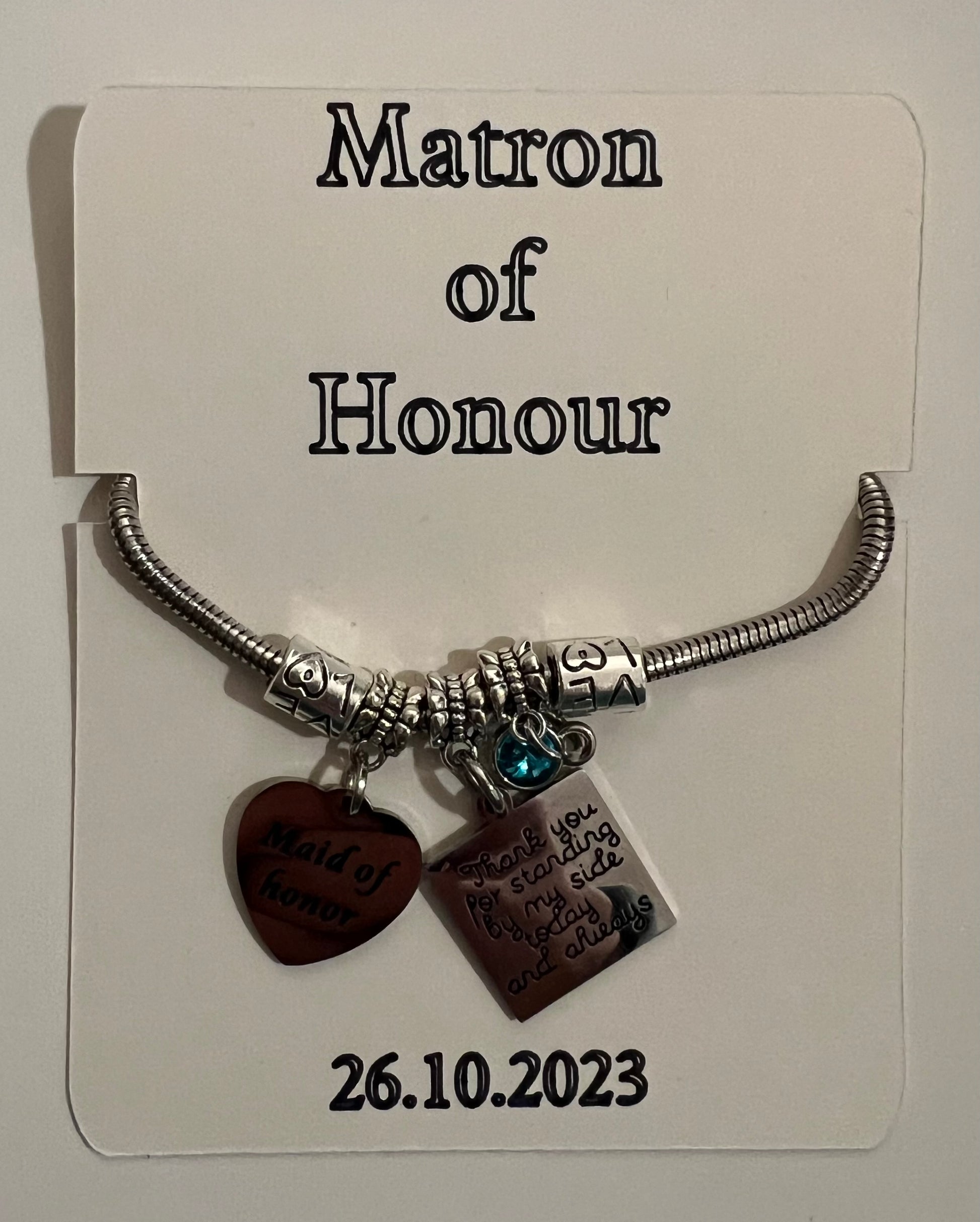 Personalised bracelet holder for bridesmaids and maid of honour. BRACELET NOT INCLUDED.
