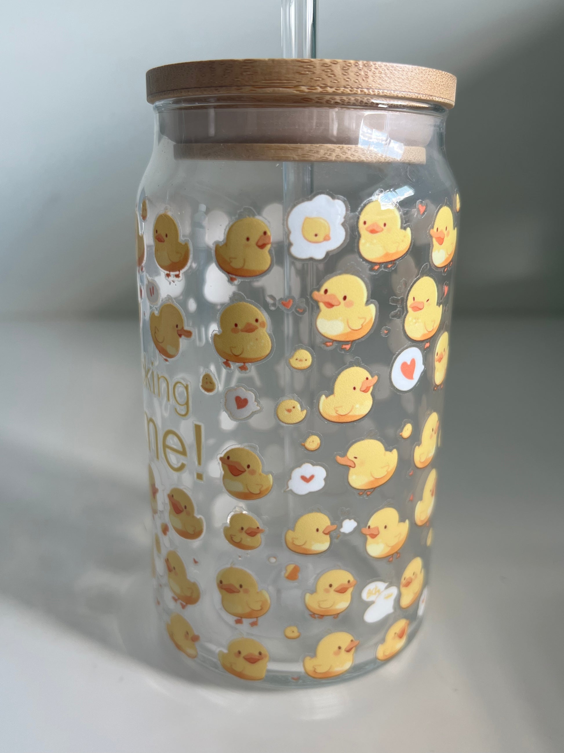 Our glass cans hold 330ml, come with a glass straw and a cool design!